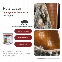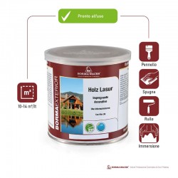 Naturaqua Holz Lasur colours are normally brighter, however solvent-based Holz Lasur is characterised by a better penetration and protection capacity. Apply by brush, spray, dipping.
