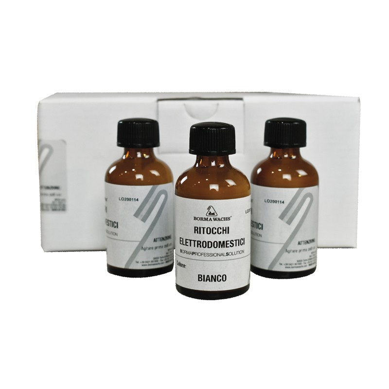 Product in bottle with brush for quick touch-up on enamelled appliances.