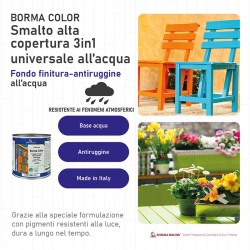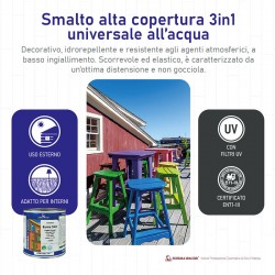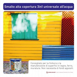 Smalto all'acqua pronto all'uso, ecologico ed inodore, di facile applicazione, adatto ad ogni tipo di supporto, in ambiente interno ed esterno.