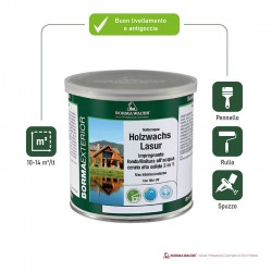 Per uso interno ed esterno, formulato con colori resistenti alla luce, grazie alle cere, offre un'ottima idrorepellenza e protezione di base dagli agenti atmosferici. Facilissima applicazione a pennello, diluzione con acqua.