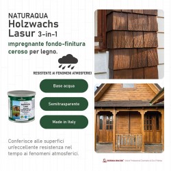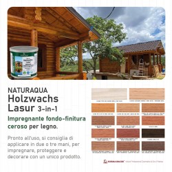 Impregnante fondo-finitura all’acqua a base di resine e cere, ad alto contenuto solido con effetto gel, non cola; facile applicazione su superfici verticali. Penetra in profondità nel legno, esalta la struttura evidenziandone la venatura ed esaltandone il tono naturale. Resa: 8 - 12 m²/Lt